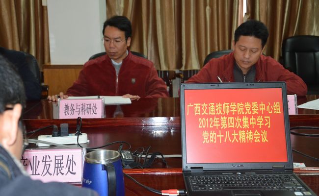 11月30日下午,我院黨委(wěi)中心組2012年第四次集中學習黨的十八(bā)大精(jīng)神會議在辦公(gōng)樓二樓會議室召開。會議深入(rù)學習(xí)了胡錦濤同誌在十八大會議上所(suǒ)作的報告,並提(tí)出學習貫徹意見。全體中層(céng)以上領導幹部,以及各黨(dǎng)支(zhī)部書記、團委書記均(jun1)按時參加了會議。會議由學院黨委委員、副院長陸天雲同誌主持。黨(dǎng)委書記羅華同誌在會議上(shàng)做了重要學習(xí)講話。