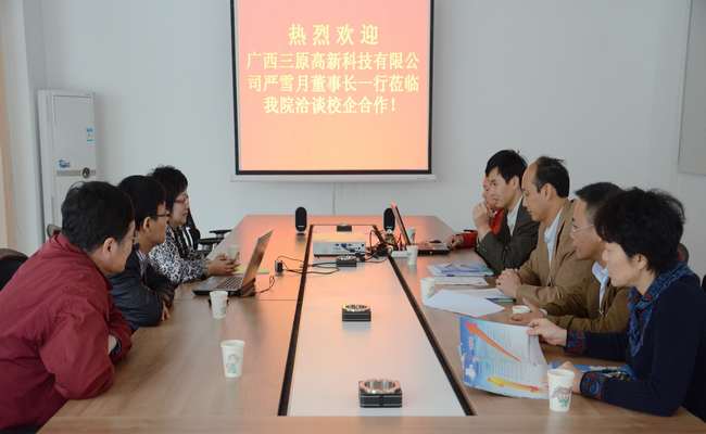 11月23日上午,廣西三原高新科技有(yǒu)限公司董事長(zhǎng)嚴雪月一行到我(wǒ)院洽(qià)談合作事宜,受到我(wǒ)院韋紅教院長、關菲明副院長等(děng)有(yǒu)關領導的熱情接待。