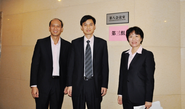 圖八:韋紅教院長(中)、關菲明副(fù)院長(左)、鄭超(chāo)文主任(rèn)(右)在答辯會場外合(hé)影(yǐng)