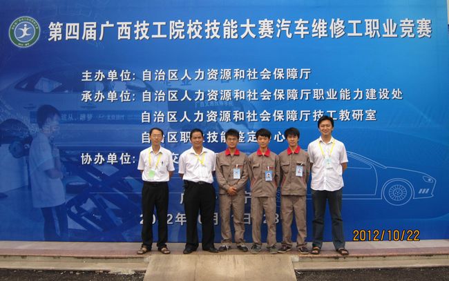 10月21 -23日,第四屆廣西技工院校技能大賽汽車修理工技能競賽在我院開賽,來(lái)自全區13所技工院校的37名參賽選手參加了汽車(chē)維修工職業(yè)技能競(jìng)賽。本次大賽在學院領導高度重視、相關部門(mén)積極配合、指導教師精心指導以及選手自身的拚搏(bó)下,我院參賽的汽(qì)車修理工項目分(fèn)別獲得前三名的佳績(jì)。根據桂人社辦發〔2012〕351號文件公布的(de)成績:其中我院選手馮光(guāng)華榮獲汽車修理工項目第一名(指導教(jiāo)師:李春(chūn)、肖華煒),李飛丞榮獲(huò)汽車修理工項目第二名(指導教師:李春、肖華煒),韋華昆榮獲汽車(chē)修理工項目第三名(指導教師:李春、肖華煒)。