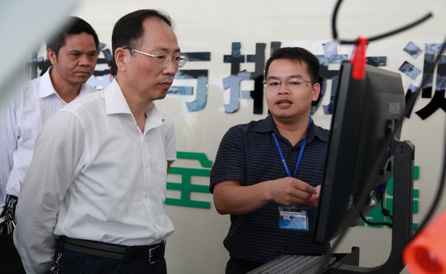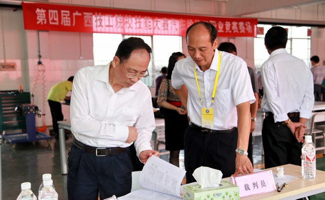 圖(tú)二:於祖毅副(fù)廳長查看大賽現場相關文件
