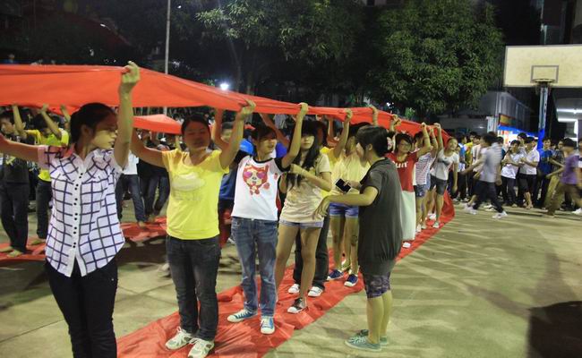 9月1日晚上7時30分(fèn),繼跳長繩比(bǐ)賽之後,學生工作處在燈(dēng)光球場又組織(zhī)2012級全體新生班級舉行名為“齊心協力向前走”的趣味競賽。