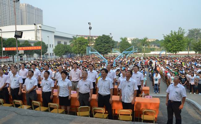 最後,開學典禮在洪亮的進行曲中圓滿地落下了帷幕。