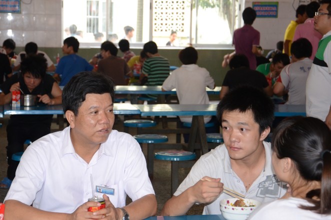 在食堂餐桌上(shàng),學校領導、老師和同學們坐在一起親切交談,氣氛熱烈。大家談人生,談理想,談感受,依依之情(qíng)溢於言表。羅華書記在給即將頂崗實習(xí)的學生寄語時(shí)深情地說,社會是個大舞(wǔ)台,希望(wàng)你們走出去後多接受鍛煉,把(bǎ)好的優良(liáng)作風帶到頂崗實習崗位上,把(bǎ)在學(xué)校學到(dào)的知識和本領應用到工作實踐中,幹出(chū)一番業績,充分展示我校(xiào)學生良(liáng)好的精神風貌。鍾修仁副校長跟學生拉家常,仔(zǎi)細詢(xún)問頂崗實習崗位落實情況,給他(tā)們鼓舞(wǔ)幹勁。2009檢(jiǎn)測技師一班李錢友同學表示,走上(shàng)頂崗(gǎng)實習崗位後,一定要好好努力,掌握過硬的(de)維修技能,爭取幹出成績,不辜負(fù)老師的栽培和厚(hòu)望。