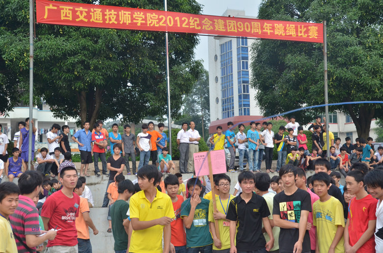 6月13日下午18:30,學校學生工作處組織在校53個班級在燈光球(qiú)場開展紀念建團90周年跳繩比賽。