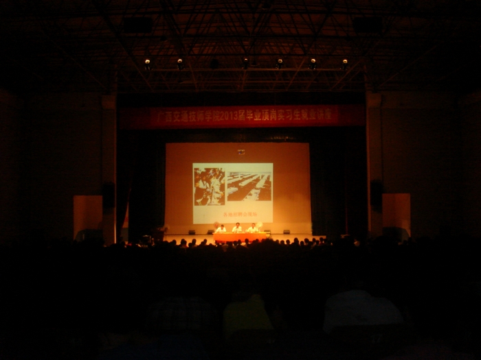 為了推動2013屆畢業生頂崗實習及就業推薦工作,學校(xiào)於2012年(nián)5月28日晚上7:20分在學校大禮堂召開(kāi)2013屆畢(bì)業生頂崗實習暨就業動員大會。大(dà)會由學校鍾修仁副校長主講,招生就業處楊波主任、孫祖(zǔ)德副主任、全體2013屆近1400名畢業生及班主任參加了動員大會.大會由招生(shēng)就業處楊波主任主持。