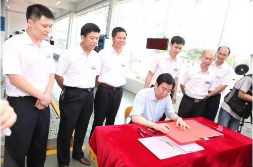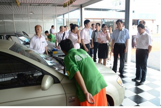 王曉初(chū)副部長一行抵達學(xué)校後,與學校領導班子親切(qiē)握(wò)手,並與學校中層以上幹部(bù)合影(yǐng)留念。接著,在宣傳展版前聽取了學校(xiào)關於基本校情、伊嶺(lǐng)新校區規劃建設、教學改(gǎi)革成果、招生就(jiù)業、校企合作、職業(yè)培訓、學生管理等方麵的情況匯報。隨後,在學校校長韋紅教、黨委書記羅華的陪同(tóng)下,王曉(xiǎo)初副(fù)部長一行實地考察了(le)學校校區、汽車鈑金與塗裝(北京史賓尼斯)實訓中心、汽車美容裝飾(龜(guī)博士)實(shí)訓中心、汽車營銷(北京運華天地)實訓中心、廣西高速公路收費員(廣西交投)培訓基地(dì)、汽車電氣(美國SPX公司)實訓中心、汽車故障(zhàng)診(zhěn)斷(上海景格)模擬仿真中心、汽車檢測與維修(北京現代)實訓中心、機動車駕駛員培訓中心等教學實訓場所。