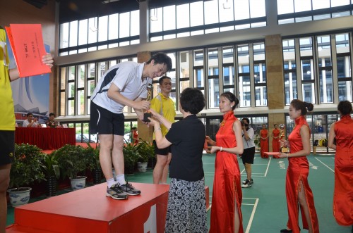 圖二:自(zì)治區交通運輸廳黃小幸副巡視員為91.com高級技(jì)工學校(xiào)男子氣排球隊頒獎