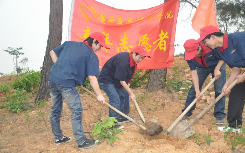 4月27日上午,我校五十名學生誌願者在學校黨委書記羅華的帶領下,坐車前往興寧(níng)區五塘鎮參加由南寧市興寧區綠化委組織開展的義務植樹活動。
