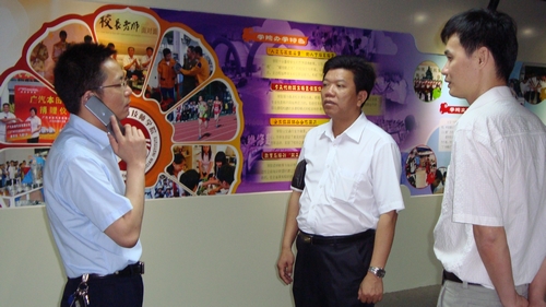 圖六:韋紅教校長和(hé)鍾修仁(rén)副(fù)校長在廣州市交通技師學校參觀考察