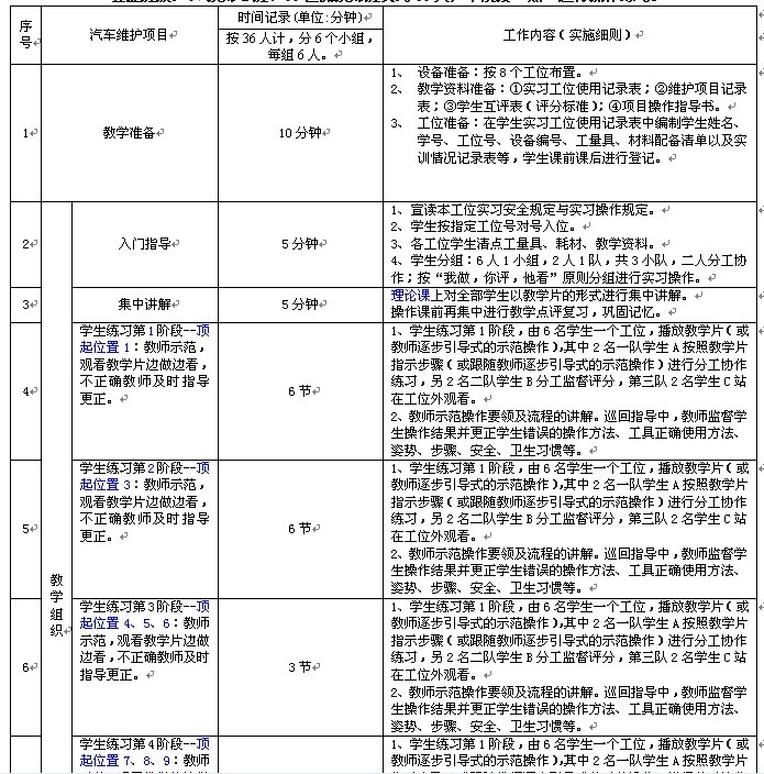 項(xiàng)目驗證(zhèng)課時統計表——汽車維護(二級維護項目)
