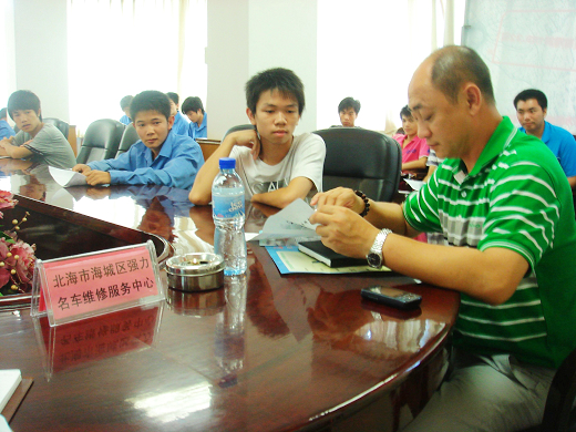 2011年6月23日下(xià)午(wǔ),北海市海城區強(qiáng)力名(míng)車維修服務中心(xīn)到我校麵試(shì)招聘2012屆畢業生,錄用了30名學生。