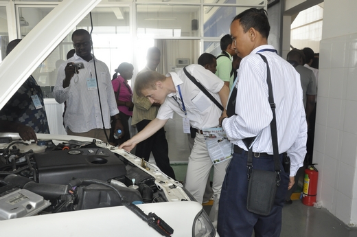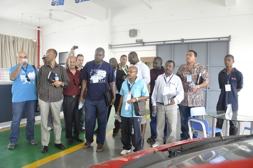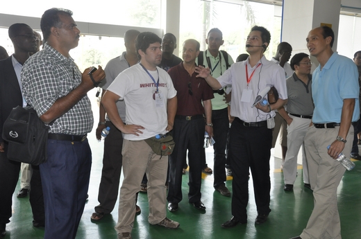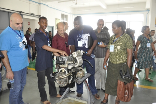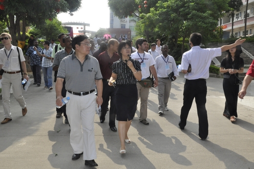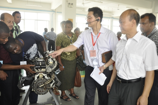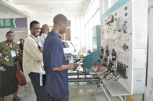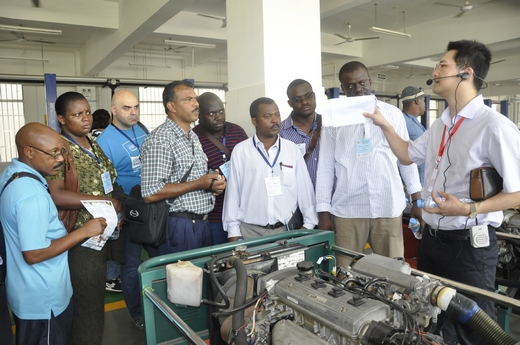 隨後,在我(wǒ)校黨委(wěi)書記羅華,黨委副書記、副校長(zhǎng)陸(lù)天雲,副校(xiào)長關菲明的陪同下,研修班學員參觀了我校的實訓大樓(lóu)和校園(yuán)環境。參觀中,許多學員對我校(xiào)的教學設備產生(shēng)了濃烈的興趣,不時駐足(zú)研究、觀(guān)看。一名來自毛裏求斯的學員在參觀我校(xiào)實(shí)訓大(dà)樓(lóu)時欣喜地(dì)說:“在我們國家很少有這(zhè)麽好的大樓,也很少有這(zhè)麽好的器材設備,希望將來我們能有(yǒu)學生過來學習,把這邊的先進經驗和技術帶回去。”參觀結束時,到訪學(xué)員(yuán)們紛紛表示,希望在不久的將來,本國能夠和我校進行學術方麵的往來和合作,並派(pài)送學生到我校就讀(dú),為本國培養更多(duō)的優秀專業人才,以滿足與汽車專業知識有關的突發事件緊急援助的(de)需要。