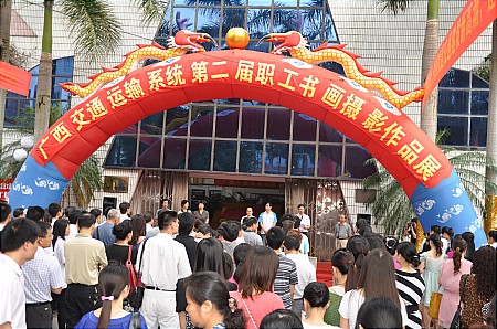 圖一 廣(guǎng)西交通運輸係統第二(èr)屆職工(gōng)書畫攝影作品展(zhǎn)揭幕儀式
