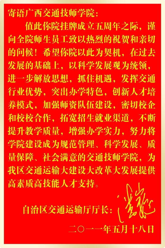 圖6 自(zì)治區交通運輸廳廳長潘巍為我校發來(lái)寄語