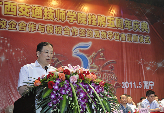 隨後(hòu),自治區交通運(yùn)輸廳副(fù)巡視員黃小幸(xìng)與自治區人(rén)力資源和社會保障廳副(fù)廳長於祖毅分別作了重要講話。上級主管部門和領導在講話中對我校掛牌五周年表示熱(rè)烈的祝賀,對我校過去五年取得的成績表示(shì)充分的肯定;希(xī)望我(wǒ)校以掛牌成立五周年為新起(qǐ)點,深入貫徹自(zì)治區中長期教育規(guī)劃綱要,緊緊抓住交通運輸大投入大建設大發(fā)展特別是汽車產業蓬勃發展的曆史機遇,進一步突(tū)出辦學特色,創新職業(yè)教育模式(shì),加快伊嶺新校區建設,不斷提升教學質量(liàng)和辦學實力,努力(lì)將學院打造成為一所現代化的、綜合性的萬人交通技師學院,為加(jiā)快我區(qū)高技能人才培養、深化職業教育改革作(zuò)出積(jī)極貢獻。