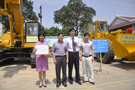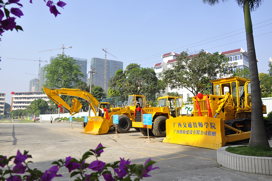 1050分,教學(xué)設備捐贈儀式如期舉行。廣西(xī)路橋建設有限公司向我校捐贈了原值271.8萬(wàn)元的教學設備(挖掘機、裝載機、推土機、壓路機各一台(tái))。韋紅教院長與廣西路(lù)建公司(sī)何崇雄總經理現場(chǎng)交換了(le)捐贈牌匾與證書,雙方熱情而友好(hǎo)地握手將現場的氣氛推向了又一個高潮。