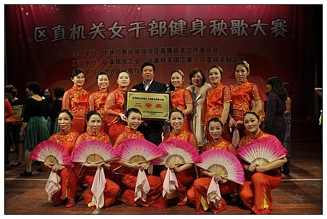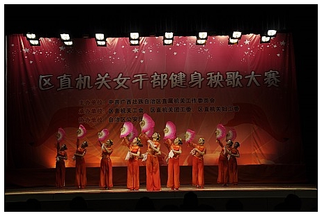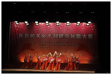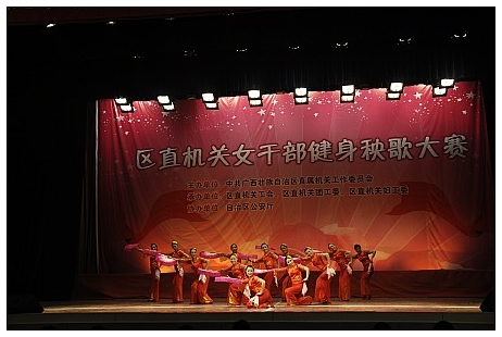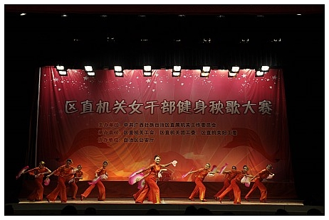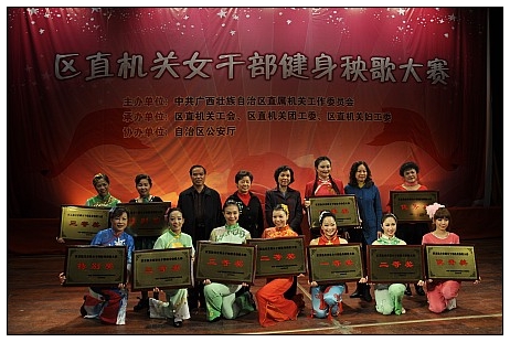 根據自治區交通運輸廳直(zhí)屬機關黨委、工會和自治區道路(lù)運輸管理局的要求,我校成立了由鍾翔鷹、劉飛英等12名女職工組成的健身秧歌隊,利用業餘時間刻苦訓練,精(jīng)心準備,於2010年12月28日(rì)晚代表自(zì)治區交通運輸廳參加由中共廣西(xī)壯(zhuàng)族自治(zhì)區直屬機關(guān)工作委員會主辦的區直機關首屆女幹部健身秧歌大賽。我校參(cān)賽隊員在大賽中不懼強手,發揮優勢,展現優美舞姿,經過激烈(liè)角逐,榮獲大賽二等獎,為自治區交通運輸廳(tīng)贏得了榮(róng)譽,出(chū)色完成了上級下(xià)達的任(rèn)務,彰顯了學校良好的(de)精(jīng)神風貌(mào)和文化(huà)藝術風采。