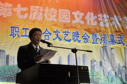 豐收和(hé)喜悅的2010年(nián)即(jí)將過去,充滿希望(wàng)的2011年很快就會到來,在這辭舊迎新的日子(zǐ)裏,我們隆重舉行校園文化藝(yì)術(shù)節教職工文藝晚會暨第七屆校園文化藝術節閉幕式,伴隨著藝術節各(gè)項目演出落(luò)下帷幕,曆經一個多月的校園文化藝術節即將畫上圓滿句號,在此,請允(yǔn)許我代表學校,向藝術節(jiē)期間獲獎的各位老(lǎo)師和同學表示熱烈地祝賀!向組織和參與本屆藝術節的各位老師和同學們表示衷心的感謝!