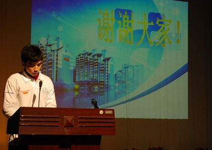 圖六:我校學生(shēng)代表楊震傑同學在儀式上發言