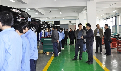 圖七:柳州市交通學校的專業教師在參觀我校汽車二(èr)級(jí)維護實驗室