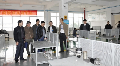 圖五:關菲明副校長陪同(tóng)考察團(tuán)參觀參觀我校汽車自動波實(shí)驗室