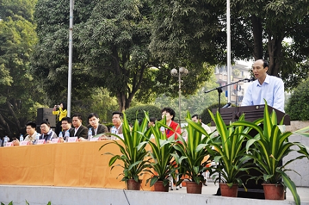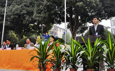 1112上午,我校在院田(tián)徑(jìng)場(chǎng)隆重舉行第21屆校園運動會(huì)開(kāi)幕式(shì)。商務基礎係(xì)鄭超(chāo)文主任主持運動會開幕式,關菲(fēi)明副校長致開幕辭,韋紅教校長宣布我校第21屆校園運動會開(kāi)幕。