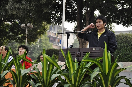 圖二:韋紅教(jiāo)校長(zhǎng)宣布我(wǒ)校第21屆校園運動會開幕