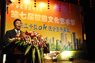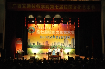 11月(yuè)16日晚,我校第七屆校園文化藝術(shù)節教職工卡拉(lā)OK歌唱晚會暨開幕式在學(xué)校禮(lǐ)堂隆重舉行。學校(xiào)全體教職工(gōng)和部分學生參加了(le)晚(wǎn)會。會上,鍾修仁副校長致開幕辭。韋紅教校長(zhǎng)宣布藝術節開幕。