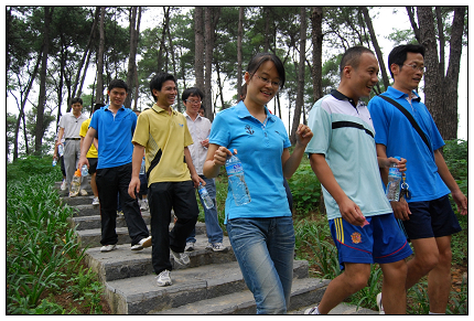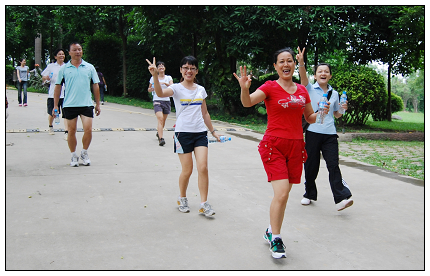 下午三(sān)點整,韋紅教(jiāo)校長宣布健(jiàn)步走開(kāi)始,250多名教職(zhí)員工浩浩蕩(dàng)蕩地(dì)出發了,廣大教職工滿臉微笑,邁著大步向獅山公園深處前行。在風光旖旎的獅山公園(yuán)中(zhōng),教(jiāo)職工一邊觀賞美景,一邊盡情享受著(zhe)健步走帶來的(de)樂(lè)趣。大約一小時後,活動順利結束。當抵達終點時,許多同誌(zhì)已是滿麵通紅,汗流浹(jiā)背(bèi),但大家都樂在其中,覺得收獲很大。