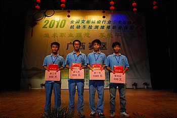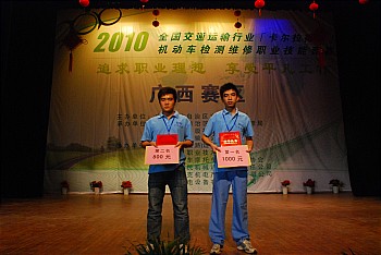楊(yáng)震傑、韓林業、韋樹高、陸用能(néng)、高宗上、梁宏(hóng)毅等6位(wèi)同學將代表廣西於201010月(yuè)12日赴北京參加2010年全國(guó)交通運輸行業卡爾拉得杯機動車檢測維修職(zhí)業技能競賽(決賽)。