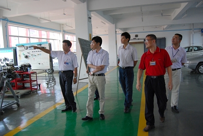 我校韋紅教校長、鍾修仁副校(xiào)長、實習就(jiù)業處楊波副主任、汽(qì)車機(jī)電係封桂(guì)炎副主任等陪同(tóng)考察。晏副總經理一行聽取了我校韋紅教校長有關教學組(zǔ)織、教育管理(lǐ)、學生管理、校企合作等情況的介紹(shào),參觀了校園和考察(chá)了學校的(de)實訓(xùn)基地。晏副總經理稱讚我校辦學條件優越,實訓設備先進(jìn),教學管理規範,對我校辦學特色和教學質量給予了較高評價,認為雙方具有(yǒu)廣泛的合作空間,希望(wàng)雙方能(néng)建立起長久校企合作關係。