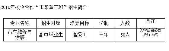 2010年校企合作(zuò)“玉柴重工(gōng)班”招生簡(jiǎn)介