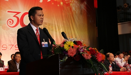 圖片六:校友代表:貴港(gǎng)通(tōng)泰汽車運(yùn)輸有限公司副總經理莫(mò)軍發言