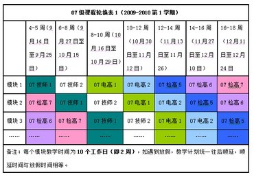 我們將同一學期內必須(xū)完成的工作項目(mù)重新組合成多(duō)個教學模塊,每一教(jiāo)學模塊由一個或幾個工作項目構成,每一教學模塊課時量都定為40學時,方便輪換(huàn),整合教學資源。