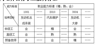 我校依據中國汽車工程學會朱軍老(lǎo)師提(tí)供的《汽車維修技術級別與崗位級別對(duì)應關係》,結合我校前(qián)期的調研成果,製定了(le)適合我校實際情況的(de)不同培養(yǎng)目標的能力標準。