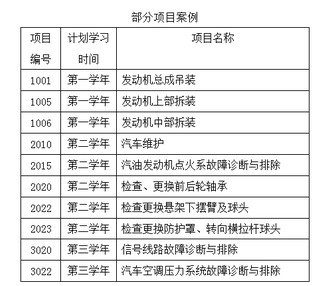 ③綜合(hé)技能實訓,承擔第(dì)二(èr)學年(nián)部分及第三學年全部實訓項目,以(yǐ)小修項目、總成大修工藝(yì)、故障診斷與排除為主。