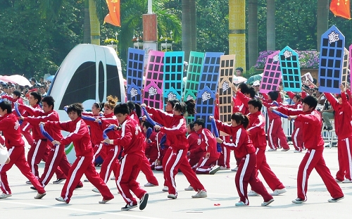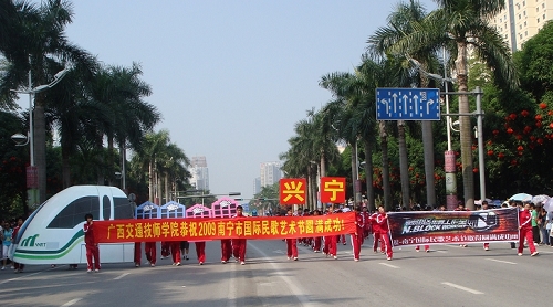 2009年10月23日上(shàng)午我(wǒ)校街(jiē)舞協會和08商務二班共50名學生代表興寧區參加2009南寧國際民歌藝術節“和諧南寧·歡樂綠城”大巡遊活動。活動(dòng)中,同學們用優美(měi)的(de)舞姿表達(dá)了我(wǒ)校對“兩會”順(shùn)利召開的祝賀,對廣西和諧社會的深深祝福,也充分展現了我校學生的青春風采。