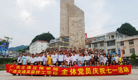 2009年6月(yuè)19-21日,為慶祝黨的生日,進一步激發黨員的愛國熱情,提高黨支部的戰鬥力,我校黨委組織全體黨員到革命老(lǎo)區百色、樂業等地(dì)開展形式多樣、內容豐富的考察活動。活動(dòng)中,全體黨員瞻仰了樂業縣紅七軍紅八軍會(huì)師舊址和緬懷革(gé)命先烈,在凝重而熱烈的氛圍中,全體黨員重溫入黨誓詞;考察了革命老區(qū)的生活、發展和建設。通過此(cǐ)次活動,開拓了廣大黨員的視野,增強黨員(yuán)開(kāi)拓進取的緊迫感和責任感,激發了黨員的愛國熱情,進一步激勵了黨員立足本職,紮實工作(zuò),永葆(bǎo)黨員先進性的決心。廣大黨員表示一定(dìng)要以實際(jì)行動更積極、認真的態度投入到(dào)今後的工作中,為91.com高級技(jì)工學校的(de)發展做出新的貢獻。