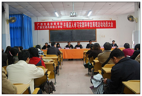 2009年4月2日,廣西(xī)交通高級技工學校隆重召開了深入學習實踐科學發展觀活動動員大會。自治區道(dào)路運輸管理局黨委副書記(jì)蒙青山、政治處副主任王愛(ài)君同誌(zhì)出席了(le)會議,學校全體教師黨員(yuán)、中層以上領導(dǎo)幹部以及部份職工參加了會議。動員大會由學校(xiào)黨委副書記陸天雲同誌主持,學校黨委書記(jì)、校長(zhǎng)孫(sūn)永(yǒng)生同誌在會上作了動員報告,對學校開展深(shēn)入學習實踐科學發(fā)展觀活(huó)動提出了具體(tǐ)要求和(hé)全麵部署。孫書記指出開展深(shēn)入學習實踐科(kē)學發展(zhǎn)觀活動,是學習貫徹黨的十七大精神的重大舉措,是解決影響教育科學發展突出問題的良好機遇,是提高廣大黨員幹部和教師(shī)政治素養的內在要(yào)求。每一位黨員教師都要深刻理解和把握科(kē)學發展觀的科學內涵和精神實質,自覺解放思想、更新觀念、按照方法步驟,明確目標,通(tōng)過學習實踐活動提高自身素質,增(zēng)強落實科學發展觀的能(néng)力,推動學校在教育改革發展、提高教育教學質量、加強黨的(de)建(jiàn)設(shè)以及創建品牌職業學校上有新突(tū)破、大發展(zhǎn)。自治區道路運輸(shū)管理局黨委副書(shū)記蒙青山(shān)在會上作了(le)重(chóng)要講話,要求全體黨員幹部一定要按照上級黨委要求統(tǒng)一思想,統(tǒng)一認識(shí),要站在全局和戰略的高度充分認識學習(xí)實踐活動的重要(yào)意義,準確把握學習實踐活動(dòng)的指導思(sī)想、基本原則和目標要求,切實增強學習實踐科學發展觀(guān)的自覺性和堅定性,創新辦學理念,創新辦學特(tè)色,認真履行職責,嚴格要(yào)求,切實提高教育教學水平。