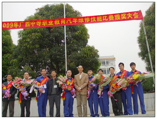 我校韋陳壽(shòu)、李桂、陳忠海(hǎi)、黃高四位同學在梁(liáng)國偉老師的精心指導下,經過長期刻苦訓練,在 2009年全區(qū)中(zhōng)等職業教育汽車維修技能比賽中(zhōng)不畏強手,發揮出色,韋陳壽、李桂(guì)團隊勇(yǒng)奪團體賽一等獎;陳忠海、黃高勇奪團體賽二等獎(jiǎng),我校參賽選手獲獎率達100%,充分(fèn)展示了我校教學成果和良好的職業素質。