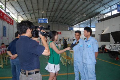 我校(xiào)率先完成底盤二級維護競賽項目的選手接受廣西電視台記者采訪